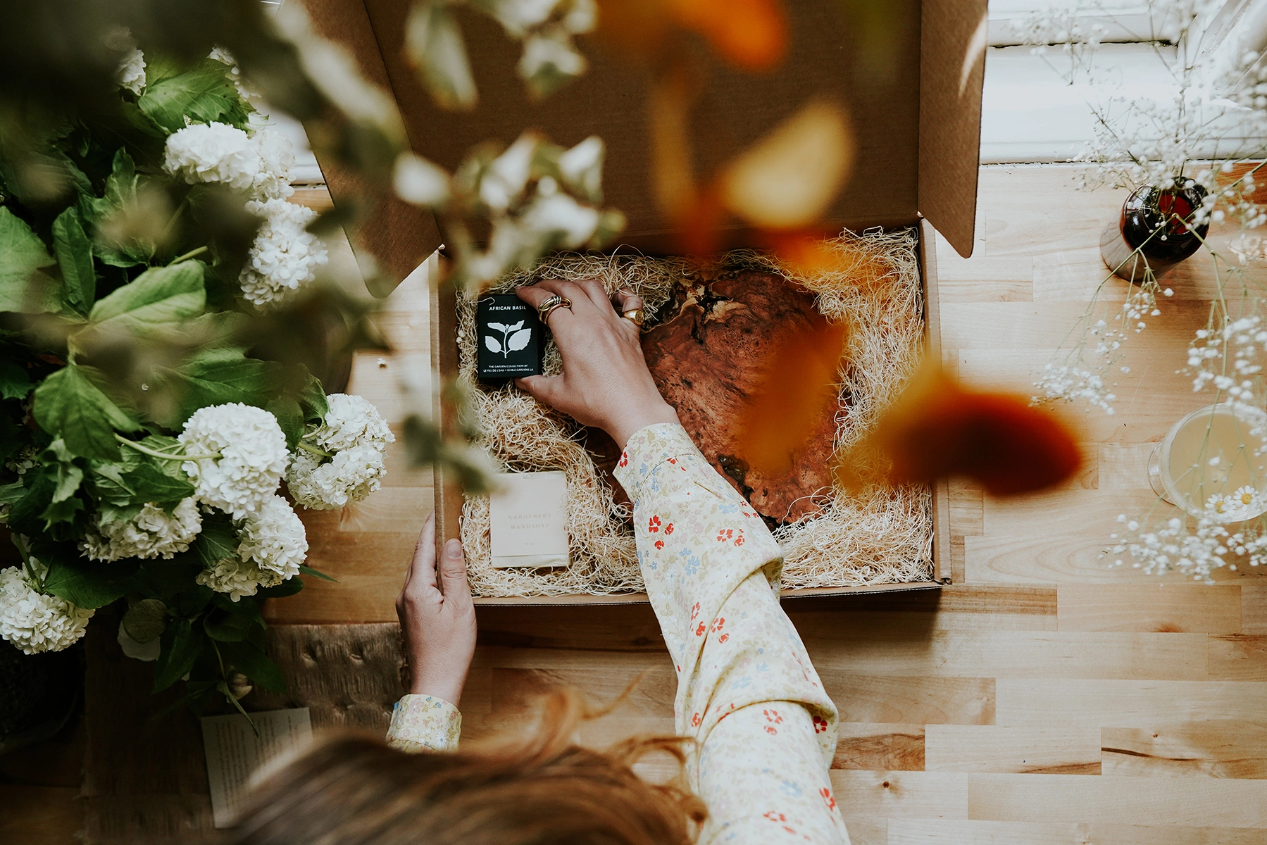 Curated gift boxes are available for purchase, with custom commissions offered as well.